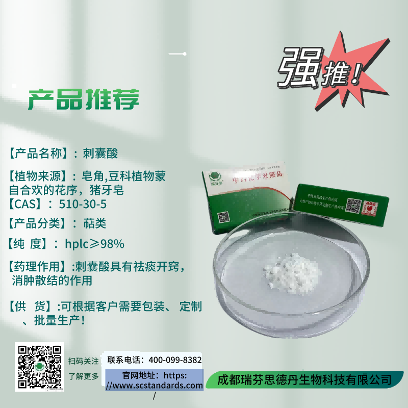 【药理作用】:刺囊酸具有祛痰开窍,消肿散结的作用