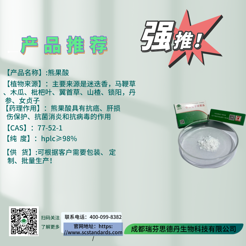 【植物来源】:主要来源是迷迭香,马鞭草、木瓜、枇杷叶、翼首草、山楂、锁阳,丹参、女贞子