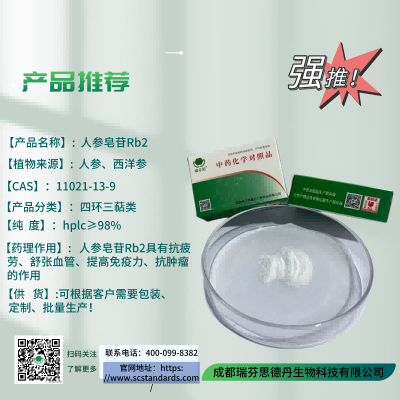 【药理作用】:人参皂苷Rb2具有抗疲劳、舒张血管、提高免疫力、抗肿瘤的作用