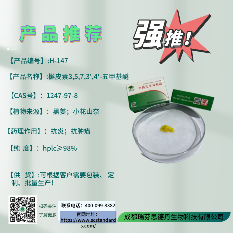 栎精-3,5,7,3',4'-五甲醚;1-[(4S)-4-苯基-2-硫代-3-噻唑烷基]-1-丙酮;槲皮黄酮-3,5,7,3',4'-PENTA甲基醚(RG);槲皮素3,5,7,3',4'-五甲基醚;栎精-3,5,7,3,4-五甲醚;3,5,7,3',4'-五甲氧基黄酮 |